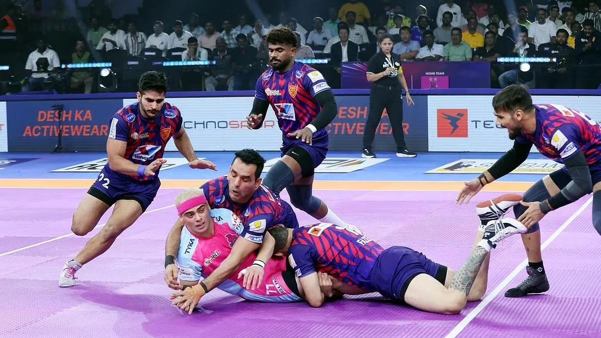 2025 च्या प्रो कब•ाr लीग स्पर्धेतील येथे झालेल्या अटीतटीच्या सामन्यात दबंग दिल्लीने विद्यमान विजेत्या जयपूर पिंक पँथर्सवर 29-26 अशा तीन गुणांच्या फरकाने थरारक विजय मिळविला. दबंग दिल्लीतर्फे कर्णधार आशु मलिक आणि संदीप यांची कामगिरी दर्जेदार झाली.