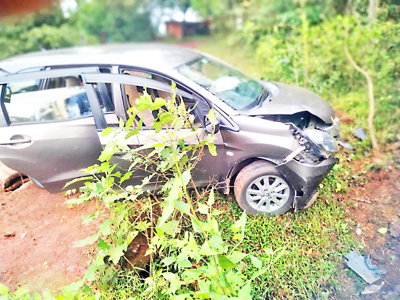 बेळगाव-गोवा महामार्गावरील रामनगरपासून काही अंतरावर असणाया राजवाळ नजीकच्या पेट्रोल पंपासमोर रस्त्यावरून चालत जाणाऱ्या तीन इसमांना वाचवण्याच्या नादात गोवा येथून दांडेलीच्या दिशेने जाणाऱ्या कारला अपघात झाला. KA 02 MK 0294 या क्रमांकांच्या कारने रस्त्याशेजारी असणाऱ्या मातीच्या ढिगाऱ्याला जोराची धडक दिली. यावेळी कारमधील (दांडेली येथील सिटी बस कंडक्टर) मंजुळा फेरो (वय 50) या गंभीर जखमी झाल्या. त्यामुळे त्यांना प्रथम 108 रुग्णवाहिकेतून रामनगर येथील सरकारी हॉस्पिटलला आणून प्राथमिक उपचार केले. त्यानंतर अधिक उपचारासाठी बेळगाव येथे हलविले आहे. मंजुळा या गोवा येथून परत येत असताना सदर अपघात झाला. अपघाताचे ठिकाण खानापूर तालुक्यात येत असल्याने घटनेची नोंद लोंढा पोलिसांत झाली आहे.