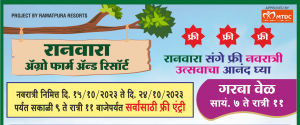 केर्ले करवीर येथील मानेवाडी परिसरात नुकत्याच सुरू झालेल्या ‘रानवारा ॲग्रो फार्म अँन्ड रिसॉर्ट’ नेहमीच पर्यटकांना आणि खाद्यप्रेमींसाठी अनेक इव्हेंट सादर करत असते. त्यापैकीच नवरात्रीनिमित्त दि.15 ऑक्टोबर ते 24 ऑक्टोबर पर्यंत सायंकाळी 7 ते 11 वाजेपर्यंत दांडिया व गरबा आयोजित केला असून त्यासाठी सर्वांसाठी चक्क मोफत प्रवेश ठेवला आहे. डिजे तालावर होणाऱ्या या गरबा आणि दांडियाला नोंदणीसाठी तरूणाईचा भरघोस प्रतिसाद मिळत आहे.