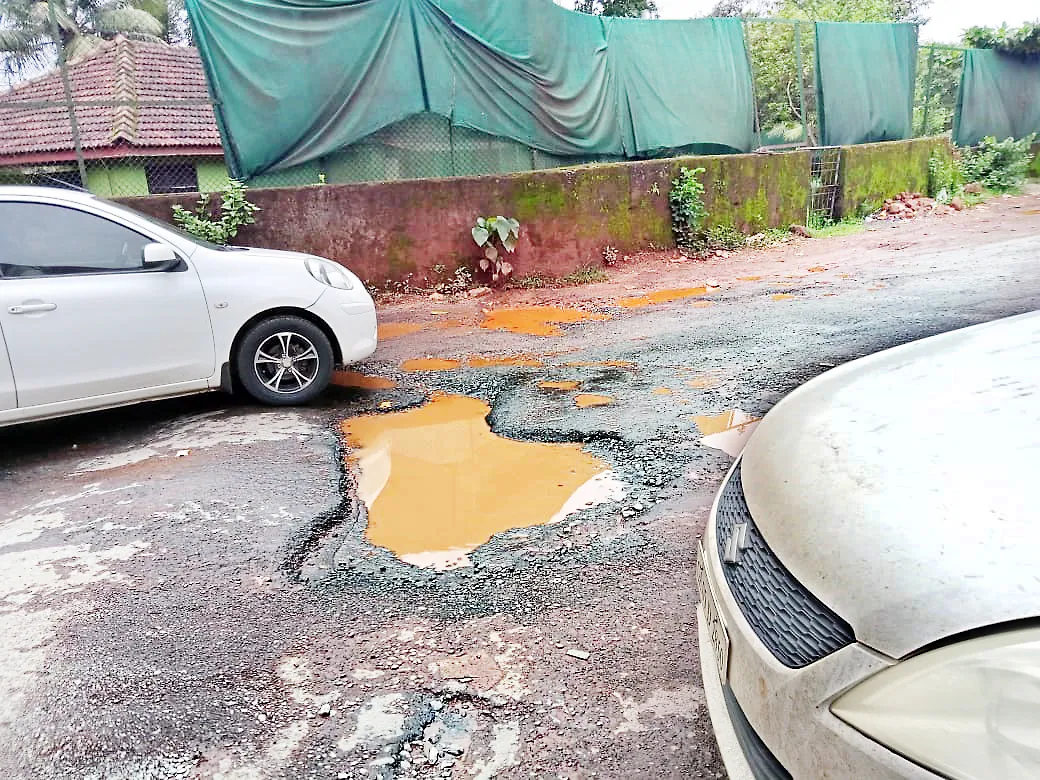 उसगांव वडाकडे सर्कल येथे प्राथमिक शाळेजवळील रस्त्यावर भले मोठे खड्डे निर्माण झाले असून वाहतूकीसाठी हा रस्ता धोकादायक बनला आहे.