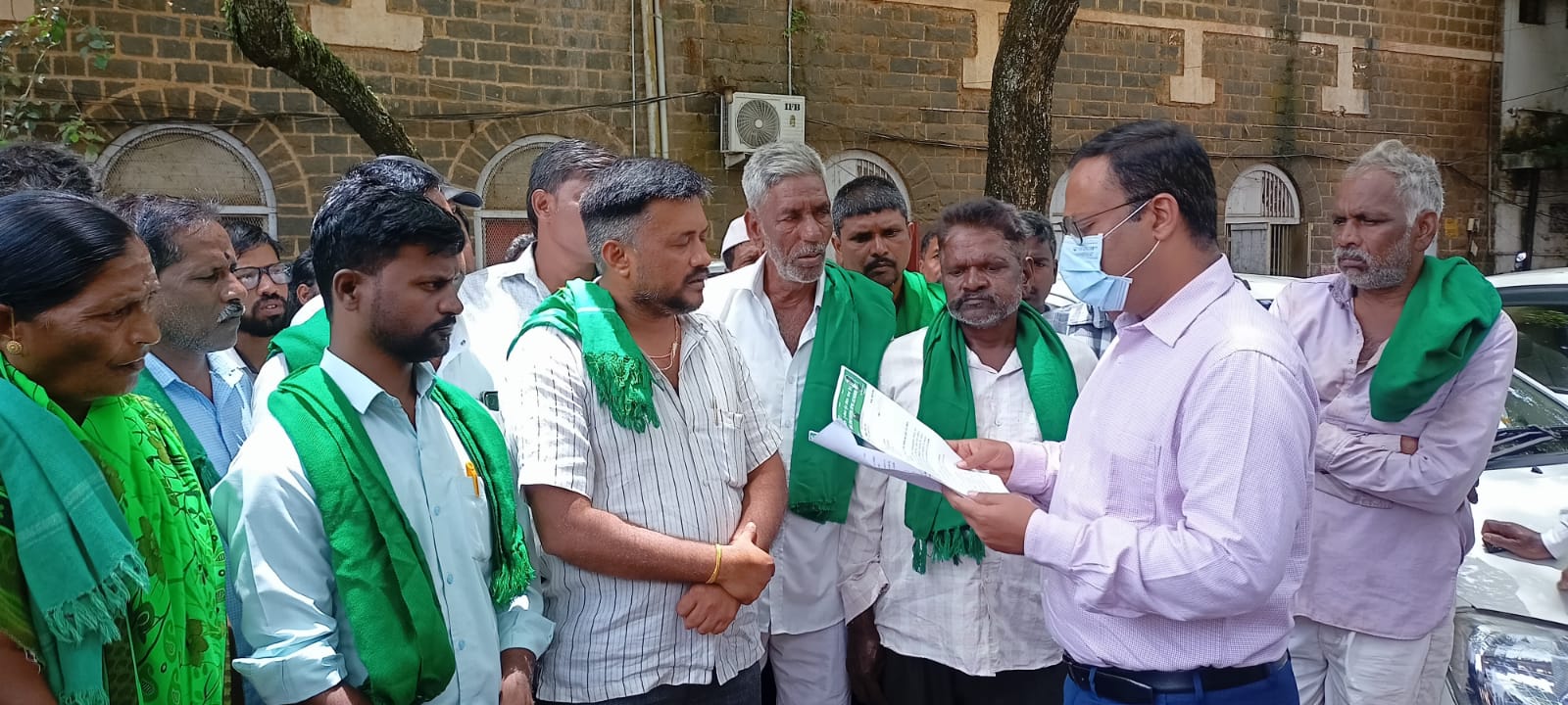 त्यासाठी दुष्काळग्रस्त जिल्हा म्हणून जाहीर करावा, शेतकऱ्यांनी विविध बँका व सहकारी संस्थांमधून घेतलेले कर्ज माफ करण्यात यावे, शेतकऱ्यांना प्रति एकर 35 हजार भरपाई द्यावी, शेतीसाठी आठ तास वीजपुरवठा करण्यात यावा, ऊस पिकाला 4500 रुपये भाव देण्यात यावा, एफआरपी 150 रुपये देण्यात यावा, कारखान्याकडे असणारी शेतकऱ्यांची बाकी त्वरित देण्यात यावी, भात, सोयाबीन, मका, ज्वारी, भुईमूग, सूर्यफूल, कापूस आदी पिकांच्या खरेदीसाठी एपीएमसीमध्ये केंद्रे निर्माण करण्यात यावी, शेतकऱ्यांचे शोषण थांबविण्यात यावे, भाजीपाला पिकाला केरळच्या धर्तीवर हमीभाव जाहीर करण्यात यावा, अशी मागणी शेतकरी संघटनेकडून करण्यात आली आहे. यावेळी शेतकरी कल्लाप्पा हरियाळ, शिवानंद तुरमुरी, निलव्वा शिंत्री, हणमंत हुलमनी, बेनप्पा गोडची आदी उपस्थित होते.