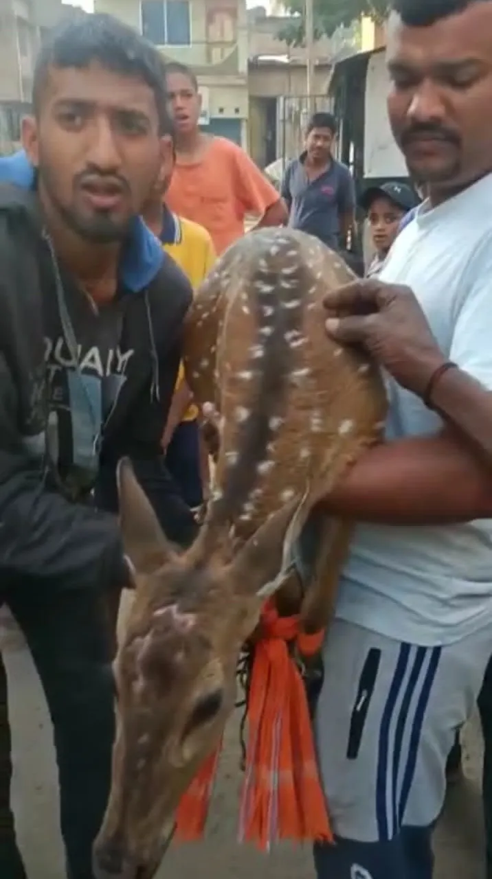 येळ्ळूर : जंगल तोडीमुळे जंगलातील प्राणी वसाहतीकडे येण्याच्या घटना वाढत आहेत. मंगळवारी येळ्ळूरमध्ये नागरी वसाहतीत चक्क हरिण आल्याने एकच खळबळ उडाली. येळ्ळूर येथील लक्ष्मी तलावाशेजाऊन आलेले हरिण सुभाष गल्लीमार्गे सिद्धेश्वर मंदिरकडे गेले. त्यानंतर ते थेट एका घरात शिरले. तेथील तऊणाने तातडीने त्याला धरले. घाबरलेल्या स्थितीत असलेल्या हरणाला एका खोलीमध्ये ठेवण्यात आले. हरिण पाहण्यासाठी मोठी गर्दी झाली होती. अनंत माऊती परीट यांच्या घरात हे हरिण शिरले आणि त्यांचा मुलगा मनोज याने त्याला पकडून काही तऊणांनी त्या हरणाचे पाय बांधले. हरणाच्या डोक्मयाला किरकोळ दुखापत झाली होती. हरिण सापडल्याची माहिती वनविभागाच्या अधिकाऱ्यांना कळविण्यात आली. त्यानंतर वनविभागाचे आरएफओ पुऊषोत्तम रावजी आणि डेप्युटी आरएफओ विनय गौडर, गार्ड मल्लिकार्जुन जोतण्णावर, महंमद किल्लेदार हे वाहनासह दाखल झाले. त्यानंतर ते हरिण बेळगाव येथील पशु वैद्यकीय केंद्रात आणण्यात आले. त्याठिकाणी त्याच्यावर उपचार करण्यात आले. नंतर भुतरामहट्टी येथील प्राणिसंग्रहालयाकडे त्या हरणाची रवानगी करण्यात आली.