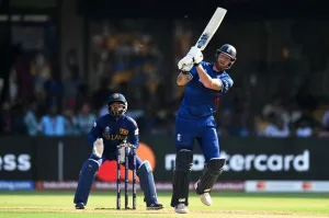 एका बाजूने अनुभवी फलंदाज बाद होत असताना बेन स्टोक्स एका टोकाला उभा होता. अशा स्थितीत इंग्लिश फलंदाजांकडून चांगल्या फलंदाजीची अपेक्षा होती, मात्र तसे झाले नाही. इंग्लंडचे फलंदाज खराब शॉट खेळून विकेट्स देत राहिले. मोईन अली 15, ख्रिस वोक्स 0 आणि आदिल रशीद 2 धावा करून बाद झाले. स्टोक्सने मात्र 73 चेंडूत 6 चौकारासह 43 धावा केल्याने इंग्लंडला दीडशेचा टप्पा तरी गाठता आला. स्टोक्स बाद झाल्यानंतर मात्र गतविजेत्यांचा डाव 33.2 षटकांत 156 धावांत आटोपला. डेविड विली 14 धावांवर नाबाद राहिला. तळाचा फलंदाज मार्क वूडला पाच धावा करता आल्या. विशेष म्हणजे, इंग्लंडच्या सहा फलंदाजांना दुहेरी आकडाही गाठता आला नाही. श्रीलंकेच्या लाहिरु कुमाराने शानदार गोलंदाजी करताना 35 धावांत 3 बळी घेतले तर कसुन रजिथा व अँजेलो मॅथ्यूज यांनी प्रत्येकी दोन विकेट घेतल्या. याशिवाय महेश थीक्षनाला एक बळी मिळाला.