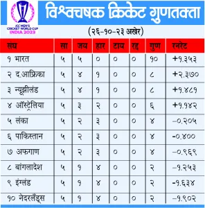 आयसीसी क्रिकेट वर्ल्डकपमध्ये गुरुवारी येथील चिन्नास्वामी स्टेडियमवर झालेल्या सामन्यात श्रीलंकेने 8 गडी राखून दणदणीत विजय मिळवला. या विजयामुळे श्रीलंकेने गुणतालिकेत पाचवे स्थान पटकावले. तर, या पराभवामुळे इंग्लंड स्पर्धेतून बाहेर पडण्याच्या उंबरठ्यावर उभा आहे. चिन्नास्वामी स्टेडियमवर एवढ्या कमी धावसंख्येवर संघ ऑलआऊट होण्याची ही पहिलीच वेळ होती. इंग्लंड संघाने हा विक्रम आपल्या नावावर केला आहे. याशिवाय वर्ल्डकपच्या इतिहासात श्रीलंकेविरुद्ध इंग्लंडची ही सर्वात कमी धावसंख्या आहे. सुरुवातीला लंकन गोलंदाजांच्या भेदक माऱ्यासमोर विद्यमान विजेत्या इंग्लंडचा डाव 33.2 षटकांत अवघ्या 156 धावांत आटोपला. यानंतर विजयासाठीचे आव्हान श्रीलंकेने 25.4 षटकांत दोन गड्यांच्या मोबदल्यात पूर्ण केले. श्रीलंकेच्या या विजयात वेगवान गोलंदाज लाहिरू कुमारा आणि सलामीवीर पथुम निसांका यांचे महत्त्वाचे योगदान होते. या विजयासह लंकन संघाने चार गुणासह पाचवे स्थान पटकावले आहे तर इंग्लंडची नवव्या स्थानावर घसरण झाली आहे. दरम्यान, इंग्लंडचा पाच सामन्यातील चौथा पराभव असून या पराभवामुळे त्यांचे वर्ल्डकपमधील स्थानच धोक्यात आले आहे.