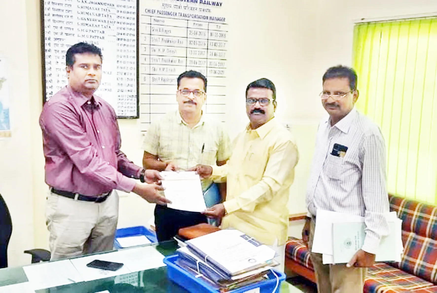 नैर्त्रुत्य रेल्वेच्या अधिकाऱ्यांना निवेदन