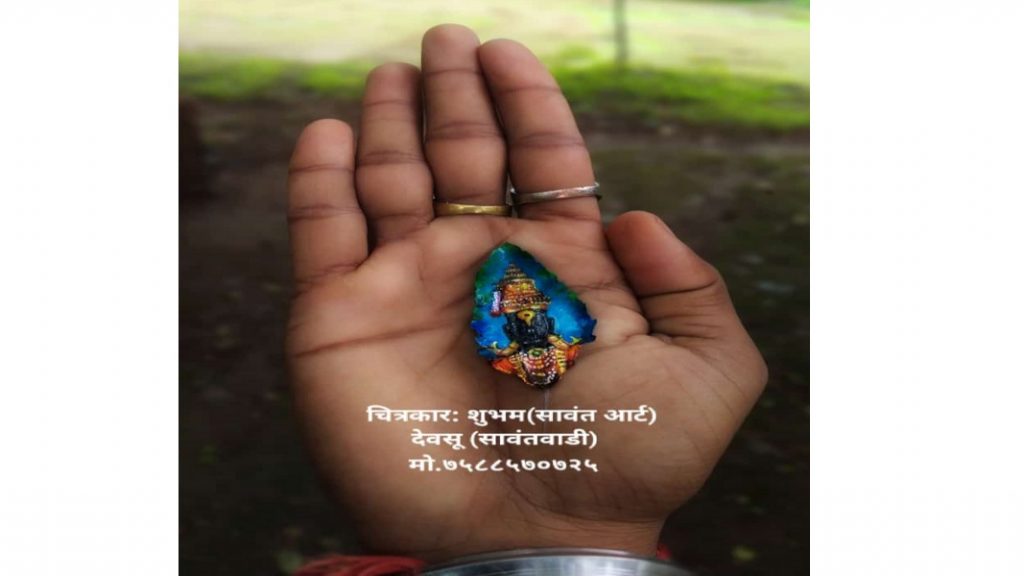 आषाढी एकादशी निमित्त देवसू येथील चित्रकार शुभम सावंत याने तुळशीच्या पानावर विठूराय साकारले आहेत . त्याच्या या चित्राचे सर्वस्तरातून कौतुक होत आहे . शुभम हा नेहमीच वेगवेगळ्या कलाकृती सादर करीत असतो .