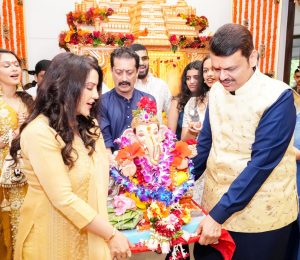 मुख्यमंत्री देवेंद्र फडणवीस यांच्या वर्षा बंगल्यावरील बाप्पाचा विसर्जन सोहळाही पार पडला. देवेंद्र फडणवीस आणि अमृता फडणवीस यांच्या हस्ते बाप्पाचं विसर्जन पार पडलं. ‘गणपती बाप्पा मोरया, पुढच्या वर्षी लवकर या‘ असं म्हणत बाप्पाचं विसर्जन करण्यात आलं.