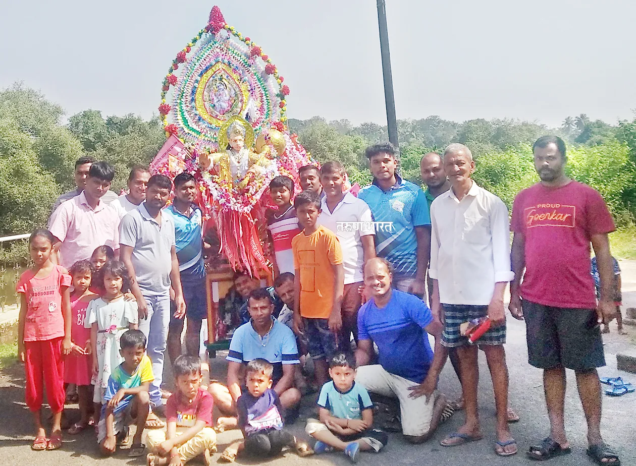 सर्व प्रथम पाडव्याची पारंपारिक लोकगीते, ढोल ताशांच्या गजरात धेणलो मंदिरासमोर आणला. गावांतवाडा कुंभारजुवे येथील कलाकार भानुदास सुर्या बेतकीकर व नवनाथ सुर्या बेतकीकर या दोन्ही कलाकारांनी अब्दागीर, मारूती व गुढय़ा आणून दिल्यानंतर धेणलोची सजावट करण्यात येते. श्री थापणेश्वर मंदिरासमोर राजू गावडे यांनी धेणल्याची पुजा अर्चा केल्यानंतर धेंडलो श्री रामायसती देवस्थानकडे निघाला. त्यावेळी श्री रामायसती मंदिराजवळ पुजा अर्चा केल्यानंतर काही महिलांनी देवाला ओटी ओवाळली. त्यानंतर श्री रामपुरूष देवस्थानकडे आल्यानंतर समीर कामत यांनी देवाची पुजा केली.