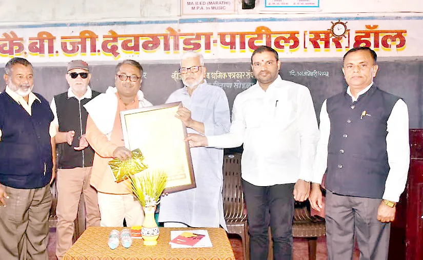 श्रीपतराव शिंदे यांच्या हस्ते रमेश हिरेमठ यांना संविधान प्रतिमा, रोख रक्कम, शाल देऊन सन्मानित करण्यात आले. पर्यावरण कार्यकर्ते अनंत पाटील यांनाही गौरविण्यात आले. यावेळी बोलताना श्रीपतराव शिंदे म्हणाले, पत्रकारांसमोर अनेक प्रलोभने असताना त्यांना बळी न पडता काम करणारे पत्रकार दुर्मीळ आहेत. असे कार्यक्रम विद्यार्थ्यांसमोर होत असल्याने त्यांना प्रेरणा मिळेल. हा देश धर्मनिरपेक्ष तत्त्वावर चालण्यासाठी पत्रकारांची भूमिका महत्त्वाची आहे.
