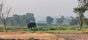 भरदिवसा गावात हत्तीचा धुमाकूळ
