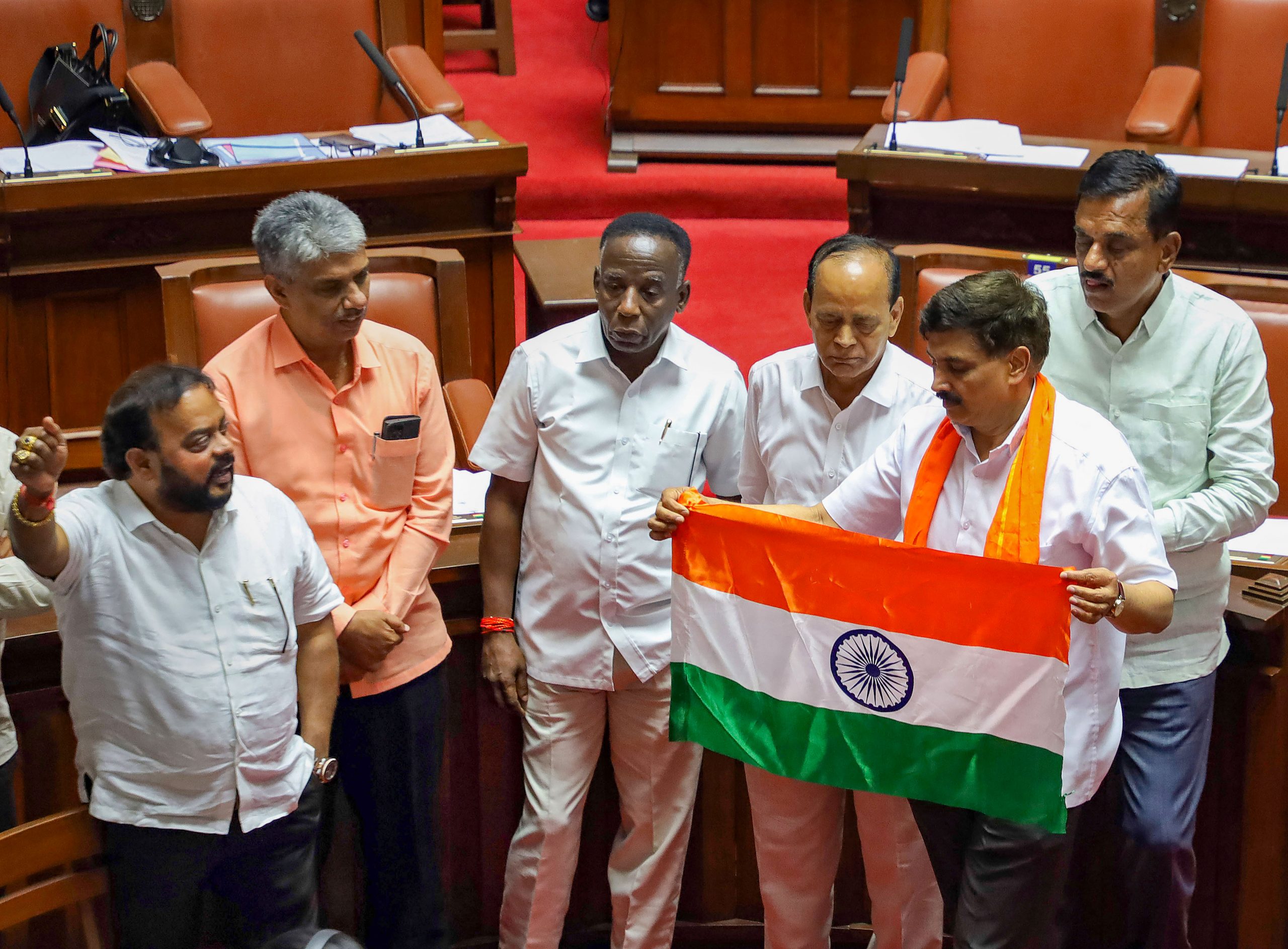 दरम्यान, काँग्रेसचे सदस्य बी. के. हरिप्रसाद यांनी भाजपवर निशाणा साधला. त्यावेळी सभापती बसवराज होरट्टी यांनी देशविरोधी घोषणा करणाऱ्यांवर कारवाईचे निर्देश सरकारने द्यावेत, असे सांगितले. त्यानंतर सभापती कामकाज सुरू करण्यास सरसावले असता भाजप आणि निजदच्या सदस्यांनी गोंधळ घातला. त्यामुळे सभाध्यक्षांनी कामकाज काही वेळेसाठी पुढे ढकलले.