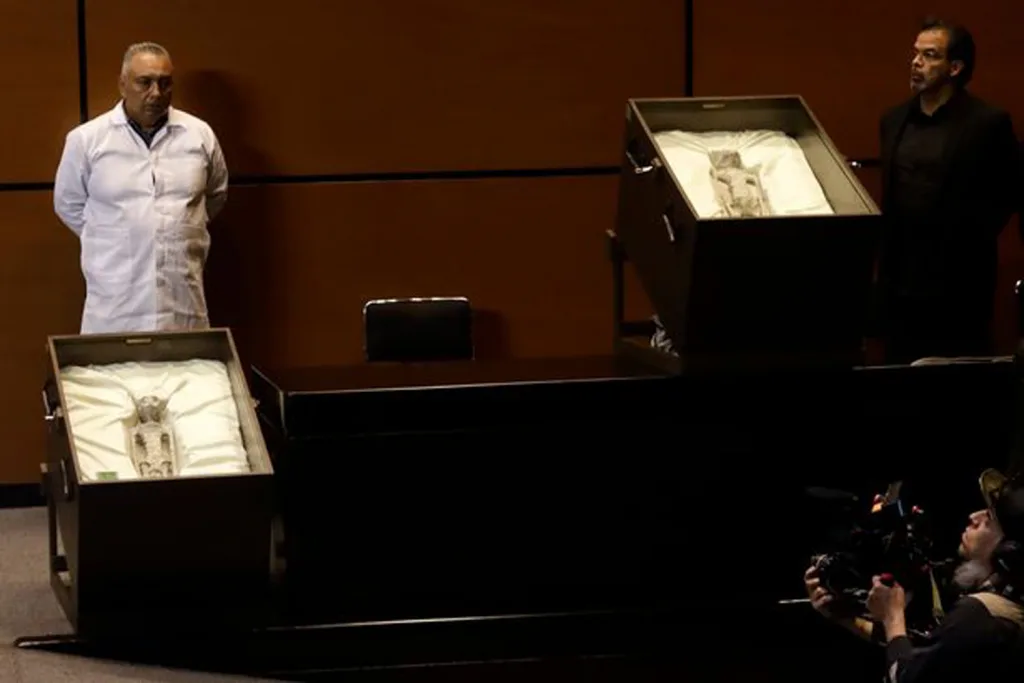 मेक्सिकोच्या संसदेत एलियन्सच्या (परग्रहवासीय) अस्तित्वाबद्दल चर्चा झाली असून यादरम्यान 2 मृतदेहही दाखविण्यात आले आहेत. हे मृतदेह एलियन्सचा असल्याचा दावा करण्यात आला. हे मृतदेह पेरूमधील एका खाणीत मिळाले होते, जे सुमारे 1 हजार वर्षे जुने असल्याचा दावा मेक्सिकन पत्रकार आणि यूफोलॉजिस्ट जेम मोसान यांनी केला आहे. संसदेत या कार्यक्रमाचे थेट प्रसारण करण्यात आले होते. ममी ठरलेल्या एलियन्सच्या मृतदेहांना लाकडी बॉक्समध्ये ठेवण्यात आले होते आणि याचा व्हिडिओ देखील जारी करण्यात आला आहे. यावेळी अमेरिकेच्या नौदलाचे माजी वैमानिक रायन ग्रेव्स देखील हजर होते. ग्रेव्स यांनीच अमेरिकेच्या संसदेत एलियन्सचे स्पेसक्राफ्ट पाहिल्याचा दावा केला होता. मेक्सिकन संसदेत या मुद्द्यावरील चर्चेदरम्यान हार्वर्ड एस्ट्रॉनॉमी विभागाच्या प्राध्यापकाने सरकारकडे एलियन्सवर अध्ययन करण्याची मंजुरी देण्याची मागणी केली आहे.