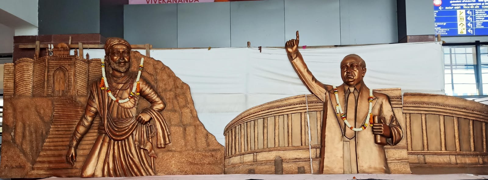 बेळगाव : संविधान समर्पणदिन असल्याने रविवारी सर्वत्र डॉ. बाबासाहेब आंबेडकर यांचा फोटो तसेच पुतळ्याचे पूजन केले जात होते. परंतु दुसरीकडे बेळगाव रेल्वे स्थानकावर डॉ. बाबासाहेब आंबेडकर व छत्रपती शिवाजी महाराज यांचे शिल्प मागील वर्षभरापासून बसविण्याकडे दुर्लक्ष केले जात आहे. शिल्प आहे तसेच ठेवल्याने त्यांना तडे जात असून रेल्वे विभागाच्या दुर्लक्षामुळे या थोर व्यक्तींचा अवमान होत आहे. यामुळे दलित संघटना तसेच शिवप्रेमींमधून संताप व्यक्त करण्यात येत आहे. बेळगाव रेल्वे स्थानकाचे नूतनीकरण केल्यानंतर फेब्रुवारी 2023 मध्ये पंतप्रधान नरेंद्र मोदी यांच्या हस्ते उद्घाटन करण्यात आले. यावेळी बेळगाव परिसरात कार्य केलेल्या थोर व्यक्तींची शिल्प व त्यांची माहिती रेल्वे स्थानकाच्या प्रवेशद्वारावर बसविण्यात आली. परंतु छत्रपती शिवाजी महाराज व डॉ. बाबासाहेब आंबेडकर यांचे शिल्प जाणुनबुजून अडगळ्या खोलीत ठेवण्यात आले होते. याची माहिती मिळताच बेळगावमधील शिवप्रेमी व दलित संघटनांनी एकत्रितरित्या भव्य आंदोलन केले. श्रीराम सेनेच्या नेतृत्वाखाली शिवसन्मान पदयात्राही काढण्यात आली. शिवप्रेमी व भीमसैनिक एकवटल्याने रेल्वे प्रशासनाने शिल्प बसविण्याचे मान्य केले. त्यावेळी अडगळीत असलेले शिल्प काढून रेल्वे स्थानकाच्या प्रवेशद्वारा शेजारी तात्पुरत्या स्वरुपात ठेवण्यात आले. महिन्याभरात हे शिल्प योग्य जागी लावण्यात येईल, असे सांगण्यात आले. या घटनेला आता अनेक महिने उलटले तरी अद्याप शिल्प बसविण्यात आलेले नाही. तसेच त्यांची योग्य व्यवस्थाही करण्यात आलेली नाही. स्वच्छता होत नसल्याने शिल्प धुळीने माखले असून या सर्व प्रकारामुळे संतापाची लाट पसरली आहे.