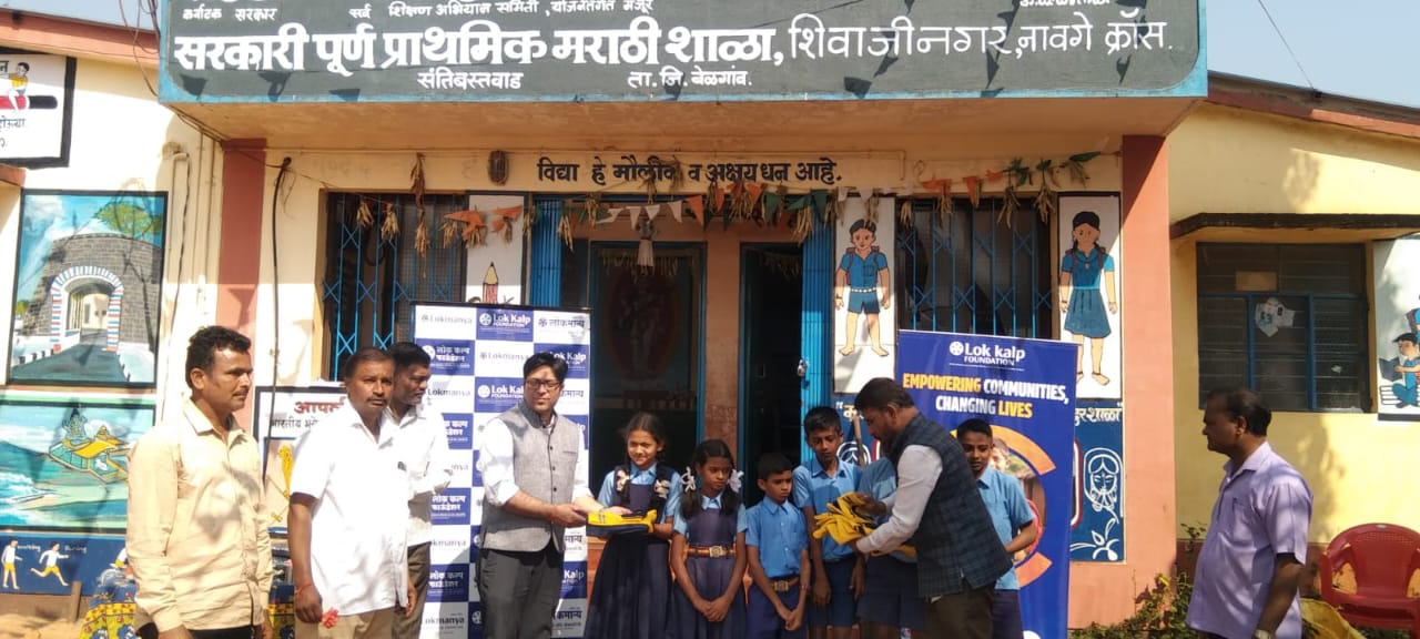 बेळगाव : लोकमान्य मल्टीपर्पज को-ऑप. सोसायटीने लोककल्प फाऊंडेशनच्या माध्यमातून सामाजिक बांधिलकी जपली आहे. लोककल्प फाऊंडेशनतर्फे विविध सामाजिक उपक्रम राबवून शिक्षण आणि व्यक्तिमत्त्व विकासासाठी नेहमीच प्रोत्साहन दिले जाते. याच उपक्रमांतर्गत शिवाजीनगर, नावगे क्रॉस येथील शासकीय मराठी शाळेमध्ये लोककल्प फाऊंडेशनने विद्यार्थ्यांना टी-शर्ट आणि टॅकसूटचे वितरण केले. किरण गावडे व निशांत दुडवानी यांच्या उपस्थितीत हा कार्यक्रम पार पडला. याप्रसंगी एसडीएमसी चेअरमन रतन कटांबळे, सचिन खेबुडे, सुनील कर्लेकर, भावकाण्णा मोटणकर, पांडुरंग सुतार, एस. एम. गुर्लहोसूर, एम. जी. यादव व पालक उपस्थित होते. सूत्रसंचालन जे. एस. कपिलेश्वरी यांनी केले.