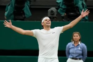 पुरूष एकेरीच्या झालेल्या चौथ्या फेरीतील सामन्यात अमेरिकेच्या टेलर फ्रिजने जर्मनीच्या अॅलेक्सझांडेर व्हेरेवचा 4-6, 6-7(4-7), 6-4, 7-6(7-3), 6-3 अशा पाच सेटस्मधील लढतीत पराभव करत शेवटच्या आठ खेळाडूत स्थान मिळविले. हा सामना साडेतीन तास चालला होता. या लढतीत व्हेरेवने पहिले सलग दोन सेटस् जिंकून आघाडी घेतली होती. पण त्यानंतर फ्रिजने भेदक वेगवान सर्व्हिस आणि बेसलाईन खेळावर अधिक भर देत व्हेरेवला नमविले. यावेळी विम्बल्डन स्पर्धेत पुरूष एकेरीत अमेरिकेच्या दोन टेनिसपटूंनी उपांत्यपूर्व फेरी गाठण्याचा पराक्रम इ.स. 2000 नंतर पहिल्यांदाच केला आहे. फ्रिज आणि टॉमी पॉल यांनी या अमेरिकन टेनिसपटूंनी आतापर्यंत दर्जेदार खेळ केला आहे. ऑस्ट्रेलियाचा अॅलेक्स डी मिनॉर आणि आतापर्यंत सातवेळा विम्बल्डन स्पर्धा जिंकणारा सर्बियाचा जोकोव्हिच यांच्यात उपांत्यपूर्व फेरीची लढत होईल. सर्बियाच्या जोकोव्हिचने चौथ्या फेरीतील सामन्यात 15 व्या मानांकित होल्गेर रुनेचा 6-3, 6-4, 6-2 अशा सरळ सेटस्मध्ये दोन तासांच्या कालावधीत पराभव करत शेवटच्या आठ खेळाडूत स्थान मिळविले. ऑस्ट्रेलियाच्या अॅलेक्स डी मिनॉरने आर्थर फिल्सचा 6-2, 6-4,4-6, 6-3 असा पराभव करत उपांत्यपूर्व फेरीत प्रवेश मिळविला.