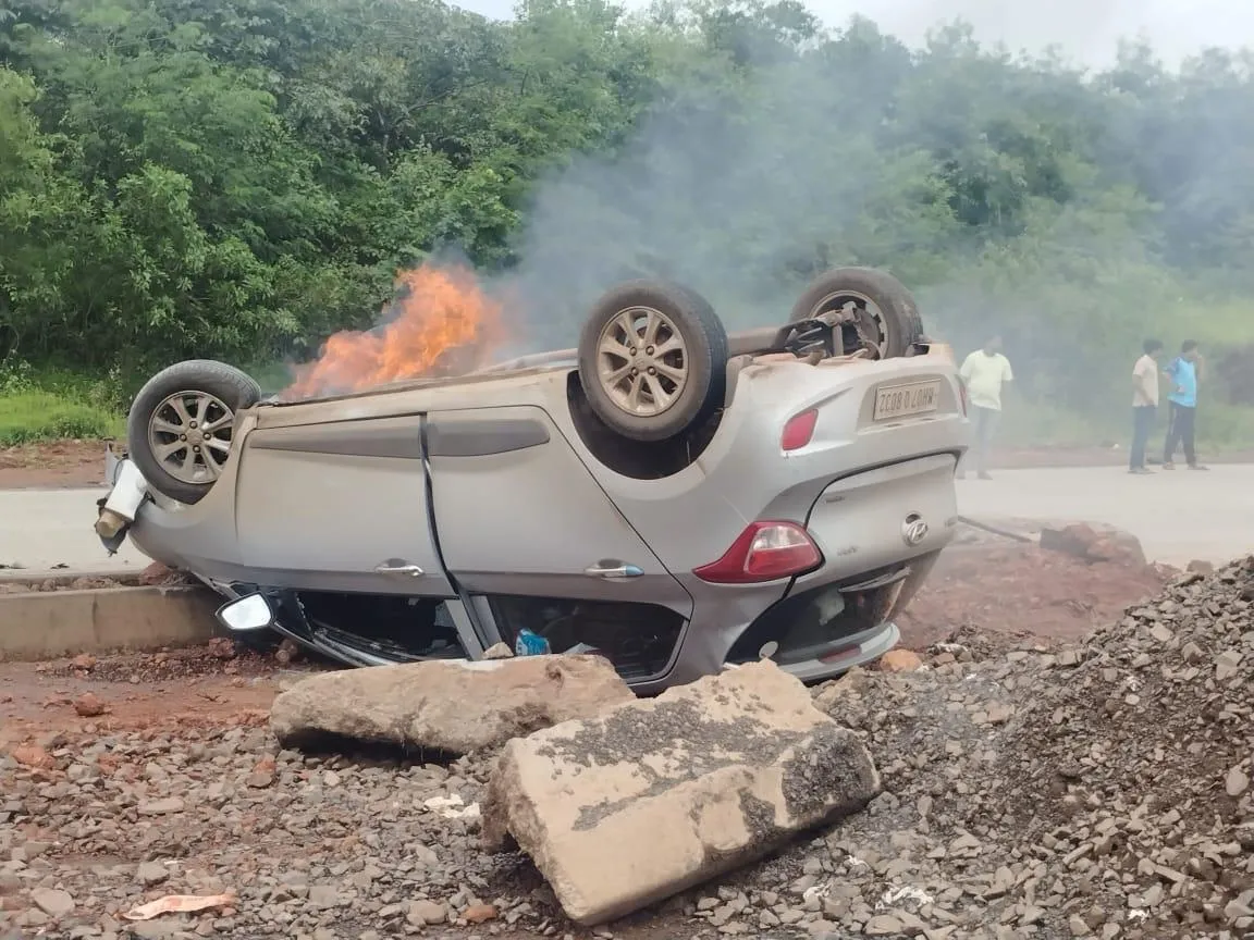 पोलिसांनी दिलेल्या माहितीनुसार 28 सप्टेंबर रोजी डॉ. मिहीर मुरलीधर प्रभुदेसाई (40, कोलगाव -सावंतवाडी) व मुलगी श़्रीशा मिहीर प्रभुदेसाई (10) हे दोघेजण कोलगाव येथून कार (एमएच 07 क्यु 8032) घेऊन मुंबईच्या दिशेने जात होते. दुपारी 2 वाजण्याच्या सुमारास ही कार हातखंबा येथे आली असता चालक डॉ. प्रभुदेसाई यांना दिशादर्शक फलक नीट न समजल्याने कार एका कठड्याला ठोकरल़ी यानंतर रस्त्याच्या कडेला कार उलटली आणि कारमधून धूर येऊ लागला. या अपघाताची माहिती मिळताच महामार्ग विभाग पोलिसानी तात्काळ अपघातस्थळी धाव घेऊन कारमधील डॉ. प्रभुदेसाई आणि त्यांच्या मुलीला बाहेर काढले. गाडी उलटल्याने श्रीशा हिला किरकोळ दुखापत झाली आहे. या अपघाताची नोंद रत्नागिरी ग्रामीण पोलिसात करण्यात आली आह़े