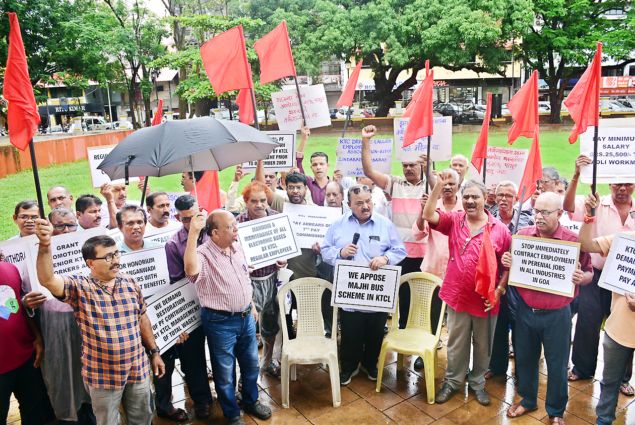 पणजी : कदंब महामंडळाचे कर्मचारी हे आतापर्यंत प्रामाणिकपणे सेवा बजावत आलेले आहेत.तरीही मुख्यमंत्री सावंत सरकार हे कदंब कर्मच्रायांच्या मागण्यांकडे जाणूनव-बुजून दुर्लक्ष क? गेल्या कित्येक वर्षांपासून बदली चालक व वाहक सेवा बजावत असताना त्यांना कंत्राटीपद्धतीवरच ठेवले आहे.हा एकप्रकारचा अन्याय असून, त्यांना कायम करावे. तसेच 1 जानेवारी 2016 पासून सातव्या वेतन आयोगाची थकीत रक्कम द्यावी, अशी मागणी कदंब बसचालक संघटनेचे सरचिटणीस तथा कामगार नेते ख्रिस्तोफर फोन्सेका यांनी केली. पणजी येथील आझाद मैदानावर एकदिवसीय धरणे आंदोलनात त्यांनी सरकारवर ताशेरे ओढले. यावेळी संघटनेचे अध्यक्ष चंद्रकांत चोडणकर, अॅड. राजू मंगेशकर, प्रसन्न उटगी व कदंब कर्मचारी संघटनेचे प्रतिनिधी उपस्थित होते.