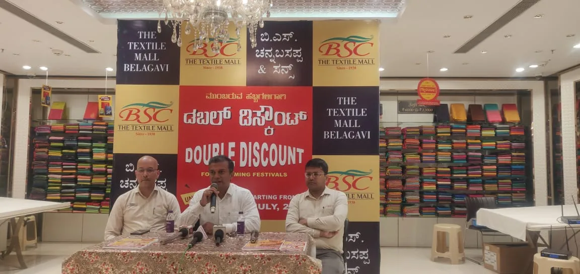 बेळगाव : श्रावण मासानिमित्त तसेच येणाऱ्या विविध सणांसाठी बीएससी मॉलने ग्राहकांना डबल डिस्काऊंटचा धमाका सुरू केला आहे. रविवार दि. 21 पासून या योजनेला प्रारंभ होत असून ग्राहकांनी याचा लाभ घ्यावा, असे आवाहन बीएससी मॉलचे व्यवस्थापकीय संचालक बी. यू. चंद्रशेखर यांनी केले आहे. बी. एस. चन्नबसाप्पा अँड सन्स टिळकवाडी-बेळगाव या मॉलला ग्राहकांनी आजपर्यंत मोठी पसंती दिली आहे. इतर कोणत्याही ठिकाणापेक्षा आपल्याकडे सर्वच कपडे स्वस्त आहेत. त्यामुळेच ग्राहकांनी आमच्यावर विश्वास दाखवून आजपर्यंत सहकार्य केले आहे. बेळगावसह गोवा, महाराष्ट्र येथूनही ग्राहकांनी आम्हाला प्रतिसाद दिला आहे. 2022 पासून सुरू झालेला हा मॉल तिसऱ्या वर्षात पदार्पण करत आहे.