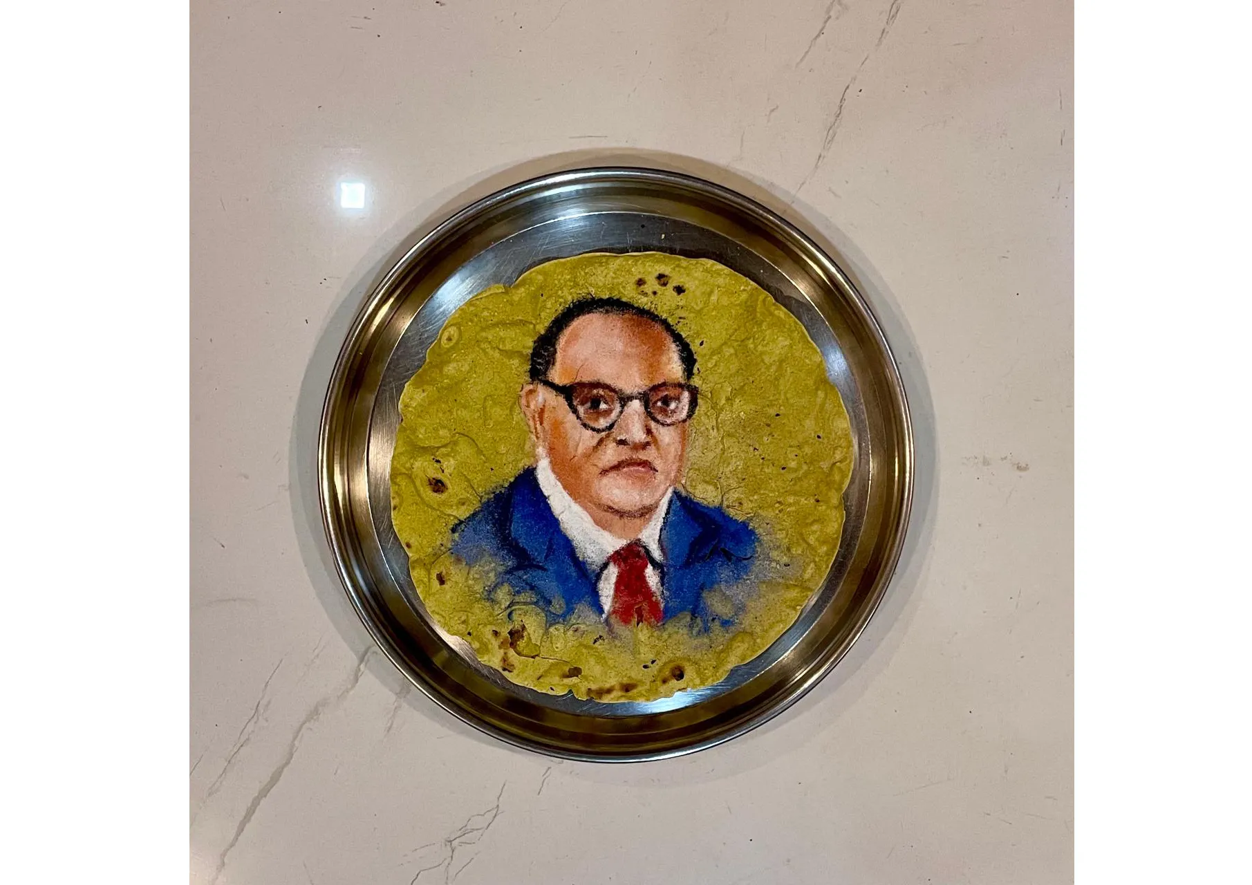बेळगाव : रांगोळी कलाकार अजित औरवाडकर यांनी बाजरीच्या भाकरीवर डॉ. बाबासाहेब आंबेडकर यांचे भावचित्र रेखाटून त्यांना अभिवादन केले. यासाठी त्यांना तीन तासांचा कालावधी लागला. ज्योती फोटो स्टुडिओ, वडगाव येथे दि. 18 एप्रिलपर्यंत सकाळी 9 ते रात्री 9 या वेळेत ही रांगोळी सर्वांसाठी खुली आहे.