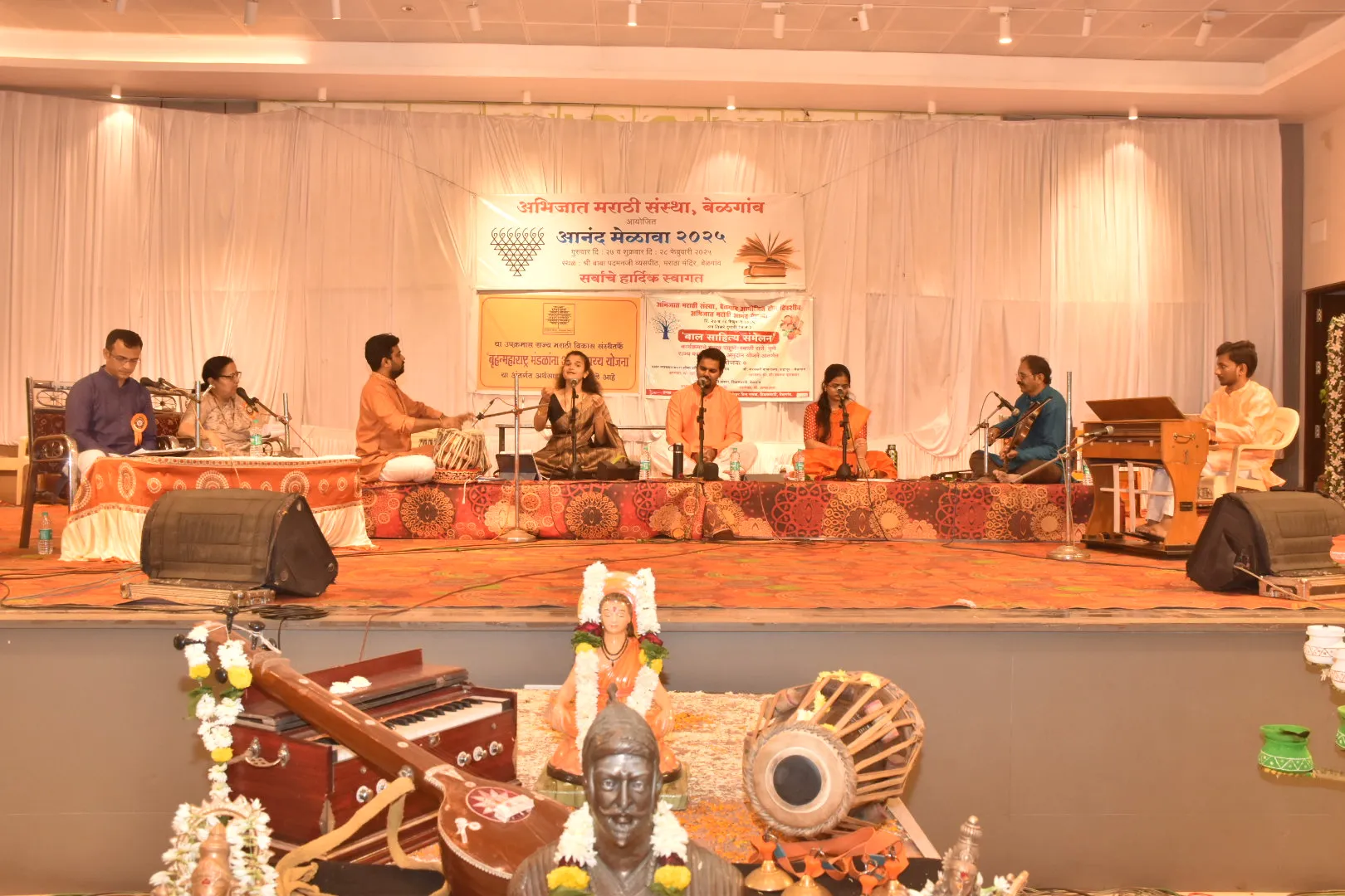 या कार्यक्रमाची सुरुवात नांदीने झाली. ‘सप्तसूर झंकारित बोले’ या नांदीनंतर सुलक्षणा यांनी ‘नाथ हा माझा मोही खला’ हे नाट्यागीत सादर केले. त्यानंतर योगेश रामदास यांनी प्रेम, वरदान, स्मरसदा तर ऐश्वर्या निरंजन यांनी ‘युवती मना दारुण रण’ हे नाट्यागीत सादर केले. त्यानंतर सुलक्षणा यांनी ‘अवघाची संसार’, ‘कशी केलीस माझी दैना’, योगेश रामदास यांनी ‘रतीहून सुंदर मदन मंजिरी’, ‘मर्म बंधातली ठेव ही’, ऐश्वर्या यांनी ‘हे सुरांनो चंद्र व्हा’ व ‘का धरिला परदेश’ ही नाट्यागीते सादर केली. ‘अगा वैकुंठीच्या राया’ या नाट्यागीताने सांगता झाली. त्यांना तबल्यावर अंगद देसाई, संवादिनी व ऑर्गनवर संतोष मिस्त्री, व्हायोलियनवर केदार गुळवणी यांनी साथ केली. सूत्रसंचालन भारती सावंत यांनी केले.