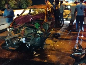बाणस्तारी पुलाजवळ विरूद्ध दिशेने मार्गक्रमण करीत असताना या मर्सिडीज कारने जीए 07 डी 3285 या दुचाकीला ठोकरल्याने सुरेश विनायक फडते जागीच ठार झाले. मागे बसलेली त्याची पत्नी भावना सुरेश फडते खोल खाईत फेकली गेली. सुमारे 1 तासानंतर तिच्या मृतदेहाचा शोध लागला होता. त्यानंतर अनुप कर्माकार याच्या यामाहा जीए 05 व्ही 4331 दुचाकीला ठोकरली. त्याच्या पाठिमागे बसलेली युवतीही गंभीर जखमी झाली आहे. तसेच अल्टो कार जीए 05 बी 3211, दुसरी अल्टो जीए 06 ए 1538, चालक आणि प्रवासी राज माजगांवकर, रोहिदास हळर्णकर (67, बाणस्तारी), याला गंभीर दुखापत झाली आहे. संशयिताला पहाटे 4 वा. अटक करण्यात आले. याप्रकरणी म्हार्दोळ पोलीस अधिक तपास करीत आहे. या अपघातात मर्सिडीज, डिस्कव्हर, यामाहा, दोन अल्टो, एक स्विफ्ट अशा एकूण सहा वाहनांचा समावेश आहे.