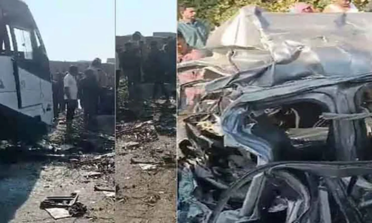 जयपूरमधील दुडू येथे टायर फुटल्याने रोडवेज बस अनियंत्रित होऊन कारवर कोसळली. या भीषण रस्ते अपघातात 8 जणांचा मृत्यू झाला. तसेच 6 जण जखमी झाले. जयपूर-अजमेर महामार्गावरील मुखमपुरा येथे गुरुवारी दुपारी पावणेचार वाजण्याच्या सुमारास हा अपघात झाला. अनियंत्रित बस पलटी होऊन कारवर कोसळल्यामुळे इको कारचा चेंदामेंदा झाला. जेसीबीच्या सहाय्याने दोन्ही वाहने हटविल्यानंतर कारमध्ये अडकलेले मृतदेह बाहेर काढण्यात आले. इको कारमधील सर्व आठही जण भिलवाडा येथील रहिवासी होते. ते महाकुंभमेळ्यानिमित्त प्रयागराजला जात होते. अपघातात सर्वांचा जागीच मृत्यू झाला.