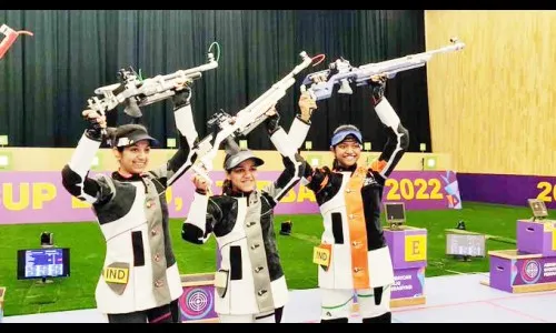 अझरबैजानमधील बाकू येथे सुरू असलेल्या आयएसएसएफ विश्वचषक नेमबाजी स्पर्धेत भारताच्या महिला नेमबाज इलावेनिल, रमिता आणि श्रेया अगरवाल यांनी महिलांच्या 10 मी. एअर रायफल सांघिक नेमबाजीत सुवर्णपदक पटकाविले.