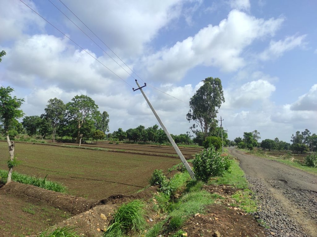 बेळगाव : वडगाव-यरमाळ रस्त्यावरील विद्युतखांब कोसळण्याच्या स्थितीत आहेत. मागील आठवड्यात झालेल्या वादळी पावसामुळे विद्युतखांब एका बाजूला कलंडले असून ते केव्हा कोसळतील, याचा नेम नाही. त्यामुळे शेतकऱ्यांना धोका निर्माण झाला असून विद्युतखांबांची दुरुस्ती करण्याची मागणी शेतकरी करीत आहेत. पहिल्याच पावसाने हेस्कॉमची दाणादाण उडविली. अनेक ठिकाणी धोकादायक वीजखांब कोसळले तर काही ठिकाणी विद्युतखांब केव्हा कोसळतील, याची शाश्वती नाही. वडगाव-यरमाळ रस्त्यावर अवचारहट्टी गावानजीक 3 ते 4 खांब एका बाजूला कलंडले आहेत. हे विद्युतखांब कोसळले तर त्यासोबत अजून 7 ते 8 खांब कोसळण्याची शक्यता आहे. असे झाल्यास शेतकरी आणि हेस्कॉमला मोठा फटका बसू शकतो. सध्या पेरणीची कामे पूर्ण झाली असून भाताची उगवणही झाली आहे. त्यामुळे विद्युतखांब कोसळल्यास शेतीचे नुकसान होऊ शकते. रस्त्याशेजारी असणारे विद्युतखांब विरुद्ध दिशेला कोसळले तर वाहनांचे नुकसान होण्याची शक्यता आहे. त्यामुळे या विद्युतखांबांची वेळेत दुरुस्ती करावी, अशी मागणी शेतकऱ्यांमधून होत आहे.
