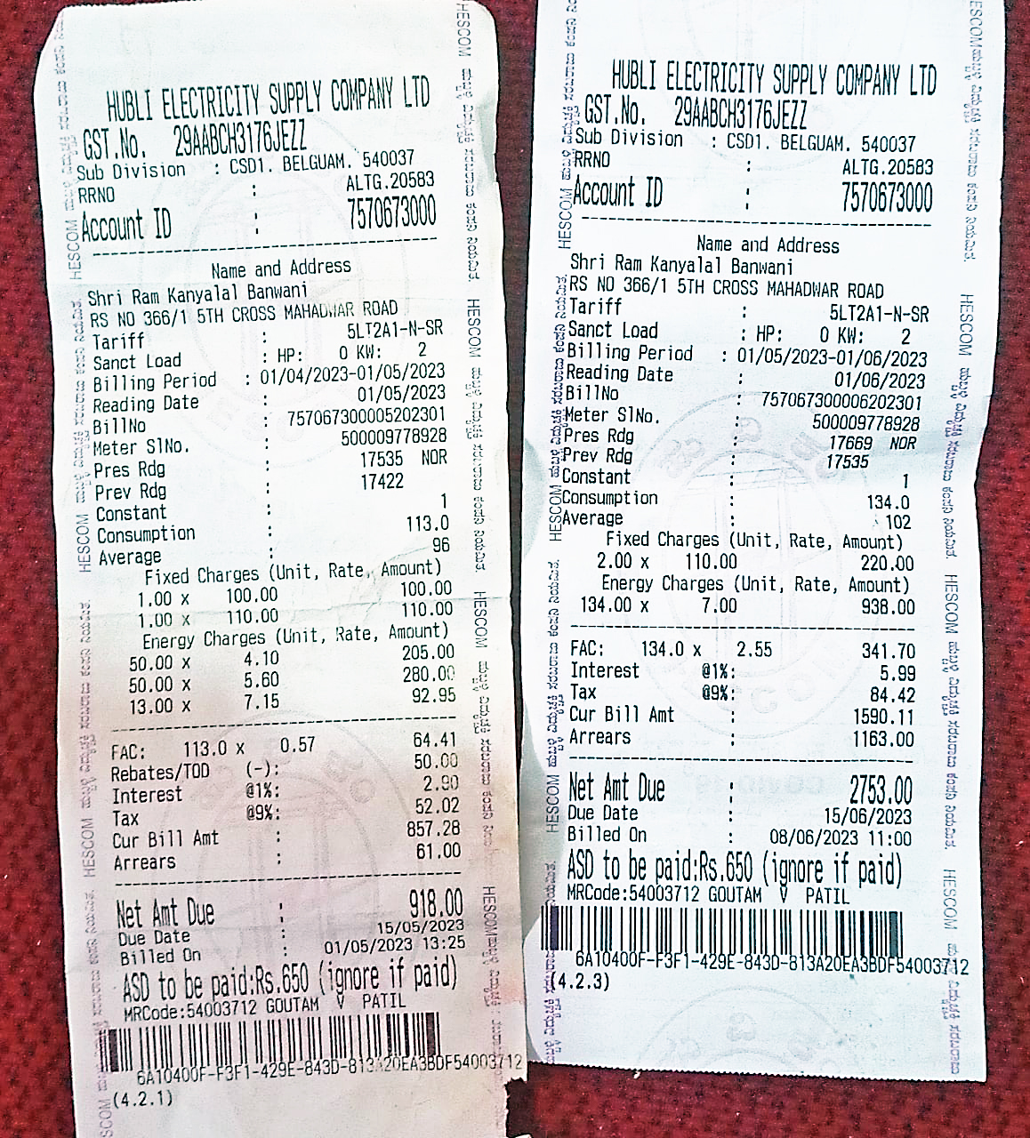 बेळगाव : हेस्कॉमकडून वाढीव वीजबिलाच्या नावाखाली नागरिकांची आर्थिक लूट करण्याचा प्रयत्न सुरू आहे. या महिन्याच्या वीजबिलात तब्बल 50 ते 60 टक्क्यांनी वाढ झाल्याने ग्राहकांचे डोळे पांढरे झाले आहेत. इतर विभागांमध्ये फ्युएल अॅण्ड पॉवर परचेस कॉस्ट अॅडजेस्टमेंट कमी असताना हेस्कॉम विभागातच सर्वाधिक दर आकारण्यात येत आहे. याविरोधात नागरिकांमधून संतापाची लाट उसळली असून वाढीव वीजबिल मागे घेण्याची मागणी केली जात आहे. एकीकडे राज्य सरकारने 200 युनिटपर्यंत मोफत वीज देण्याचा निर्णय घेतला असताना दुसरीकडे मात्र फ्युएल चार्जेसमधील अॅडजेस्टमेंट कॉस्टच्या नावाखाली 50 ते 60 टक्के विद्युतबिल वाढविण्यात आले आहे. ज्या ग्राहकांचे बिल महिन्याला 600 ते 700 रुपये येत होते, त्यांचे बिल या महिन्यात थेट हजार ते बाराशेपर्यंत पोहोचले आहे. हेस्कॉमच्या काही ग्राहकांनी वरिष्ठ अधिकाऱ्यांपर्यंत यासंदर्भात तक्रारीही केल्या. परंतु, अधिकाऱ्यांनी हतबलता व्यक्त करत दरवाढ करणे महत्त्वाचे असल्याचे उत्तर दिले. राज्यात दरवर्षी 1 एप्रिलपासून नवीन विद्युत दर लागू केले जातात. यावर्षीही नवे विद्युत दर लागू करण्याची तयारी केईआरसीने केली होती. परंतु, विधानसभा निवडणुकीची आचारसंहिता लागू करण्यात आल्याने दरवाढ पुढे ढकलण्यात आली. निवडणूक संपताच घरगुतीसह व्यावसायिक मीटरमागे दरवाढ करण्यात आली. यामुळे जून महिन्यात आलेल्या विद्युतबिलात मोठी वाढ झाल्याचे दिसून आले आहे. 50 ते 60 टक्के बिलात वाढ झाल्याने बिल कसे भरायचे? हा प्रश्न सर्वसामान्य नागरिकांसमोर आहे.