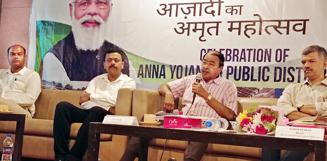 भारत सरकारच्या खाद्य निगम मंडळातर्फे फोंडा येथील राजीव गांधी कला मंदिरमध्ये आझादी का अमृत महोत्सवाअंतर्गत आयोजित केलेल्या अन्न योजना व वितरण कार्यक्रमात ते प्रमुख पाहुणे म्हणून बोलत होते. यावेळी व्यासपीठावर नागरी पुरवठा खात्याचे संचालक सुधीर केरकर, खाद्या निगम मंडळाचे विभागीय व्यवस्थापक घनश्याम महाले, फोंडय़ाचे नगराध्यक्ष रितेश नाईक व महिला व बाल कल्याण खात्याच्या संचालिका दीपाली नाईक हे उपस्थित होते.