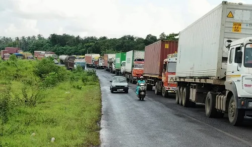 महामार्गाच्या दुतर्फा वाहनांच्या रांगाच रांगा : अंजणारी पुलाखाली गॅसवाहू कंटेनर कोसळल्याचा परिणाम : वाहतूक देवधे-काजरघाटीमार्गे वळवली