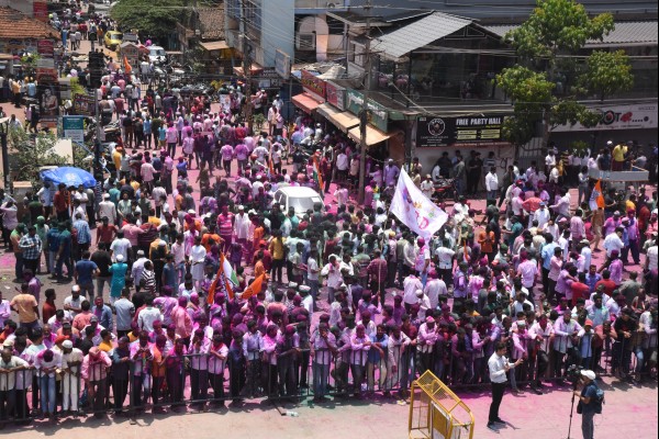 बेळगाव तालुक्यापेक्षा रायबाग, अथणी, चिकोडी, हुक्केरी येथून मोठ्या प्रमाणात कार्यकर्ते या परिसरात दाखल झाले होते. गोवावेस येथे वाहनांसाठी रस्ता बंद करण्यात आल्याने सोमवार पेठ, मंगळवार पेठ या परिसरात वाहने लावून कार्यकर्ते आरपीडी चौक परिसरात येत होते. यामुळे सकाळच्या सत्रात काहीकाळ वाहतूक कोंडीचा सामना करावा लागला. निकाल समाजमाध्यमांमुळे काही क्षणात मोबाईलवर उपलब्ध होत असल्यामुळे म्हणावी तितकी कार्यकर्त्यांची गर्दी झाली नव्हती. परंतु, कार्यकर्त्यांचा जल्लोष आणि उत्साह मात्र शिगेला पोहोचला होता.