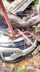 म्हापसा : दोन दिवस पडलेल्या मुसळधार पावसामुळे बार्देश तालुक्यात झाडांची बरीच पडझड झाली. काही ठिकाणी झाडे मुळातून उन्मळून रस्त्यावर कोसळली. नेऊल वेरे येथे शेडमध्ये ठेवलेल्या कारवर आब्यांचे झाड पडल्याने कार गाड्यांचे बरेच नुकसान झाले. संध्याकाळी सिकेरी कांदोळी येथे ताज हॉटेलजवळ बोरीचे झाड तीन दुचाकींवर पडल्याने दुचाकीचेही नुकसान झाले. म्हापसा अग्निशामक दलाचे अधिकारी क्रिष्णा पर्रीकर यानी दिलेल्या माहितीनुसार, नेऊल येथे चर्चसमोर भलेमोठे पुरातन आब्यांचे झाडे पावसामुळे पडले. घटनेची माहिती मिळताच पीळर्ण अग्निशामन दलाच्या जवानानी घटनास्थळी धाव घेऊन सदर झाड कापून बाजूस केले. सकाळी 9 वा. च्या दरम्यान मानशेर वेरे येथे एक भलेमोठे झाड शेडवर पडून कार क्रमांक जीए 03 झेड 2310 चा दर्शनी भागाचा चुरडा झाला. याचबरोबर सकाळी 11 वाजताच्या दरम्यान भलेमोठे भेंडीचे झाड कुचेली पेट्रोल पंपजवळ पडले. म्हापसा अग्निशामन दलाच्या जवानानी झाड कापून बाजूला केले. दुपारी पावणे तीन वाजताच्या दरम्यान जयदेव वाडा नास्नोडा येथे सरस्वती घाडी यांच्या घरावर कोकमचे झाड पडून त्यांचे 20 हजार ऊपयांचे नुकसान झाले. ताज हॉली सिकेरी बार्देश येथे भलेमोठे बोरीचे झाड पडल्याने 3 दुचाकींचे नुकसान झाले.