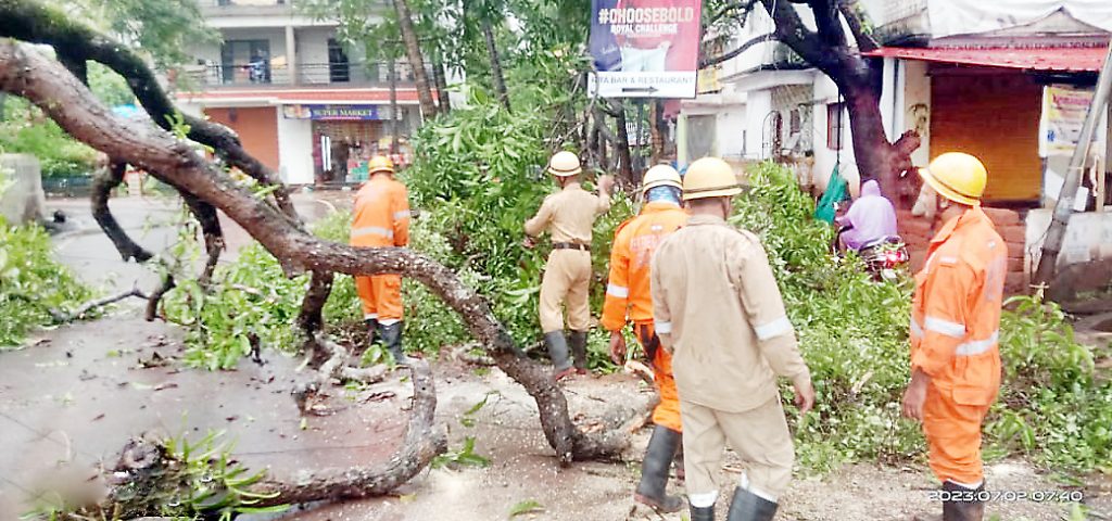 म्हापसा : दोन दिवस पडलेल्या मुसळधार पावसामुळे बार्देश तालुक्यात झाडांची बरीच पडझड झाली. काही ठिकाणी झाडे मुळातून उन्मळून रस्त्यावर कोसळली. नेऊल वेरे येथे शेडमध्ये ठेवलेल्या कारवर आब्यांचे झाड पडल्याने कार गाड्यांचे बरेच नुकसान झाले. संध्याकाळी सिकेरी कांदोळी येथे ताज हॉटेलजवळ बोरीचे झाड तीन दुचाकींवर पडल्याने दुचाकीचेही नुकसान झाले. म्हापसा अग्निशामक दलाचे अधिकारी क्रिष्णा पर्रीकर यानी दिलेल्या माहितीनुसार, नेऊल येथे चर्चसमोर भलेमोठे पुरातन आब्यांचे झाडे पावसामुळे पडले. घटनेची माहिती मिळताच पीळर्ण अग्निशामन दलाच्या जवानानी घटनास्थळी धाव घेऊन सदर झाड कापून बाजूस केले. सकाळी 9 वा. च्या दरम्यान मानशेर वेरे येथे एक भलेमोठे झाड शेडवर पडून कार क्रमांक जीए 03 झेड 2310 चा दर्शनी भागाचा चुरडा झाला. याचबरोबर सकाळी 11 वाजताच्या दरम्यान भलेमोठे भेंडीचे झाड कुचेली पेट्रोल पंपजवळ पडले. म्हापसा अग्निशामन दलाच्या जवानानी झाड कापून बाजूला केले. दुपारी पावणे तीन वाजताच्या दरम्यान जयदेव वाडा नास्नोडा येथे सरस्वती घाडी यांच्या घरावर कोकमचे झाड पडून त्यांचे 20 हजार ऊपयांचे नुकसान झाले. ताज हॉली सिकेरी बार्देश येथे भलेमोठे बोरीचे झाड पडल्याने 3 दुचाकींचे नुकसान झाले.