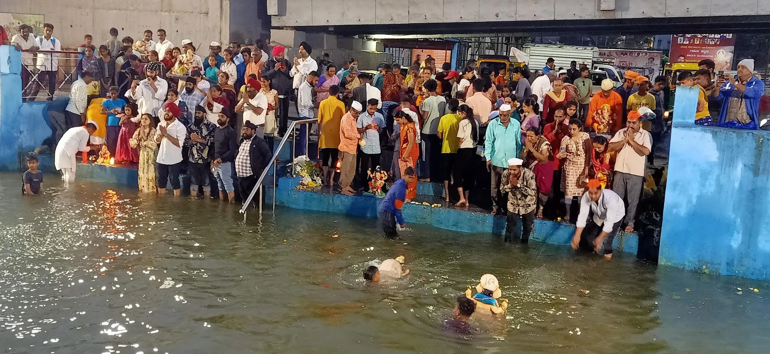 विसर्जन तलावांवर गणेशभक्तांची रिघ