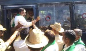यावेळी शेतकऱ्यांनी मंत्र्यांकडून असे वक्तव्य यापूर्वीही करण्यात आले आहे. शेतकऱ्यांचा अपमान करणारा, शेतकऱ्यांना दोष देणाऱ्या मंत्र्यांनी केलेले वक्तव्य हे सरकारचे वक्तव्य आहे. त्यामुळे सरकार शेतकरी विरोधी आहे, हे दिसून येते. अशा मंत्र्यांचा धिक्कार असो, अशी घोषणाबाजी करत शेतकऱ्यांनी भंडारा उधळून निषेध नोंदविला. कार्यालयात घुसण्याचा प्रयत्न करताच शेतकऱ्यांना रोखण्यात आले. यावेळी पोलीस व शेतकऱ्यांत झोंबाझोंबी झाली. पोलिसांनी शेतकऱ्यांना ताब्यात घेतले व घटनास्थळी मोठा पोलीस बंदोबस्त तैनात केला. साखर कारखान्यांमध्ये खुलेआम काटामारी केली जात आहे. याचा पुरावा देऊनही जिल्हाधिकाऱ्यांकडून कारवाई होत नाही, असा आरोपही यावेळी करण्यात आला. एकूणच सरकार शेतकरीविरोधी भूमिका घेत आहे, असे सांगत शेतकऱ्यांनी सरकारविरोधात तीव्र आंदोलन छेडण्याचा इशारा दिला. शेतकरी नेते प्रकाश नायक यांच्यासह अनेक शेतकऱ्यांना ताब्यात घेण्यात आले.