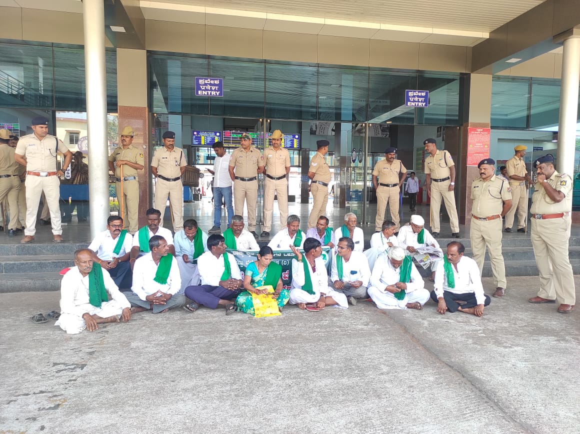 बेळगाव : उत्पादनाच्या किमान आधारभूत किमतीसाठी शुक्रवारी फेडरेशन ऑफ स्टेट फार्मर्स ऑर्गनायझेशनच्यावतीने बेळगाव रेल्वेस्थानकासमोर आंदोलन करण्यात आले. केंद्र सरकारकडून शेतकऱ्यांची निव्वळ फसवणूक केली जात असून, डॉ. स्वामीनाथन यांच्या अहवालाची अंमलबजावणी करावी, अशी मागणी यावेळी शेतकऱ्यांनी केली. केंद्र सरकारच्या नवीन नियमांमुळे कॉर्पोरेट कंपन्या शेतकऱ्यांची लुबाडणूक करीत आहेत. मागील वर्षी दिल्ली येथे झालेल्या आंदोलनामध्ये केंद्र सरकारने अंमलबजावणी केलेल्या तीन कायद्यांना मागे घेण्याची मागणी करण्यात आली होती. तेव्हा शेतकऱ्यांना एमएसपी (किमान आधारभूत किंमत) देण्याचा निर्णय घेण्यात आला होता. परंतु, अद्याप याची अंमलबजावणी केंद्र सरकारने केली नसल्याने शेतकऱ्यांनी केंद्र सरकारविरोधात आगपाखड केली. शुक्रवारी सकाळपासूनच रेल्वेस्थानकासमोर कडक बंदोबस्त ठेवण्यात आला होता. आंदोलनाला हिंसक वळण लागू नये, यासाठी पोलिसांनी सर्वत्र बंदोबस्त लावला होता. जोवर मागणी मान्य होणार नाही, तोवर हटणार नाही, अशी भूमिका शेतकऱ्यांनी घेतली. यामध्ये जिल्हाभरातील शेतकरी संघटनांचे पदाधिकारी सहभागी झाले होते.