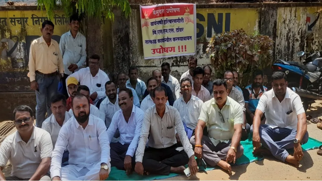 वेंगुर्ले तालुक्यातील वायंगणी हरिचरणगिरी तळेकरवाडी येथील बीएसएनएल कंपनीचा उभारण्यात आलेला टॉवर कार्यान्वित करण्याच्या मागणीसाठी हरिचरणगिरी येथील ग्रामस्थांनी शुक्रवारी सावंतवाडी बीएसएनएल कार्यालयासमोर सरपंच दत्ताराम दुतोंडकर यांच्या नेतृत्वाखाली उपोषण छेडले .8 महिन्यापूर्वी या टॉवरचे काम पूर्ण झाले असून अद्यापही हा टॉवर कार्यान्वित झालेला नाही. सातत्याने बीएसएनएल विभागाला पाठपुरावा करून देखील त्याचीच दखल घेतली गेली नसल्याने अखेर ग्रामस्थांनी उपोषणाचा मार्ग स्वीकारला. सरपंच दत्ताराम दुतोंडकर यांच्या नेतृत्वाखाली उपोषण सुरू केले. शिवसेना सावंतवाडी विधानसभा प्रमुख रुपेश राऊळ, वेंगुर्ले तालुकाप्रमुख यशवंत परब, सावंतवाडी तालुकाप्रमुख मायकल डिसोजा, विभागप्रमुख विनोद ठाकूर यांनी उपोषणाला पाठिंबा दिला यावेळी राऊळ यांनी बीएसएनएलच्या वरिष्ठ अधिकाऱ्यांशी केलेल्या चर्चेत एक महिन्यात बीएसएनएल टॉवर कार्यरत करण्याचे आश्वासन अधिकाऱ्यांनी दिले आहे. यावेळी उपसरपंच रवींद्र धोंड , प्रशांत प्रभुखानोलकर ,आनंद दाभोलकर ,भिकाजी गावडे, अनंत मठकर ,अनंत केळजी ,प्रताप करंगुटकर ,सुनील प्रभुखानोलकर ,विलास मांजरेकर ,प्रकाश नागोळकर ,सचिन वाडेकर , सत्यवान दुतोंडकर, शशिकांत असोलकर,श्रीकृष्ण हळदनकर, रवींद्र शिरोडकर, साहिल सावंत, निलेश म्हापणकर,जयेश आकेरकर,समीर केळूसकर उपस्थित होते .