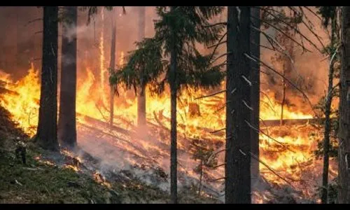 जम्मू-काश्मीरच्या राजौरी येथील जंगलांमध्ये लागलेल्या आगीने मंगळवारी रात्री भीषण रुप धारण केले आहे. यामुळे वनसंपदेला नुकसान पोहोचत आहे. तर वन्यजीवांवरही संकट ओढवले आहे. वन्यप्राणी जीव वाचविण्यासाठी नागरी वस्तींच्या दिशेने धाव घेत आहेत. तर वनक्षेत्राला लागून असलेल्या भागांमध्ये आगीच्या धुरामुळे प्रदूषण फैलावले आहे. आगीवर नियंत्रण मिळविण्यासाठी अग्निशमन दलाकडून जोरदार प्रयत्न केले जात आहेत.