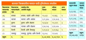 कारवार : कारवार जिल्ह्यातील मतदारांची अंतिम यादी तयार करण्यात आली आहे. अंतिम यादीनुसार जिल्ह्यातील मतदारांची संख्या 12 लाख 7 हजार 433 इतकी आहे. यामध्ये पुरूष मतदारांची संख्या 6 लाख 4 हजार 466 इतकी तर महिला मतदारांची संख्या 6 लाख 2 हजार 961 इतकी आहे. अन्य मतदारांची संख्या 6 इतकी असल्याची माहिती कारवार जिल्हाधिकारी गंगुबाई मानकर यांनी दिली. त्या आज जिल्हाधिकारी कार्यालयात जिल्ह्यातील प्रमुख राजकीय पक्षांच्या नेत्यांना मतदार याद्यांचे वितरण करून बोलताना पुढे म्हणाल्या, 27-10-2023 रोजी प्रसिद्ध करण्यात आलेल्या मतदार यादीनुसार जिल्ह्यातील मतदारांची एकूण संख्या 11 लाख 98 हजार 532 इतकी होती. 1-1-2024 रोजी अंतिम करण्यात आलेल्या यादीनुसार या संख्येत 8 हजार 901 इतकी भर पडली असून आता मतदारांची संख्या 12 लाख 7 हजार 433 इतकी झाली आहे. 2024 लोकसभा निवडणूक संदर्भात जिल्ह्यातील ज्येष्ठ मतदारांची संख्या 29 हजार 229, युवा मतदारांची संख्या 24 हजार 399 आणि दिव्यांग मतदारांची संख्या 15 हजार 579 इतकी आहे. आगामी लोकसभा निवडणुकीसाठी जिल्ह्यात एकूण 445 कंट्रोल युनिट, 2756 बॅलेट युनिट आणि 2035 व्हीव्हीपॅटचे वितरण करण्यात आले आहे. यावेळी अप्पर जिल्हाधिकारी प्रकाश राजपूत, असिस्टंट कमीशनर कनिष्क, काँग्रेसचे नेते समीर नाईक आणि भाजपचे मनोज भट उपस्थित होते.