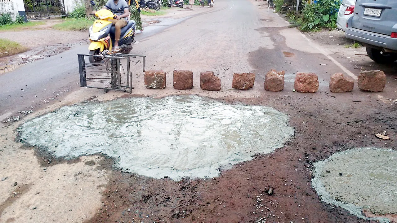 मरडीवाडा मोरजी येथील मुख्य स्त्यावरील भला मोठा खड्डा माजी उपसरपंच अमित शेटगावकर यांनी स्वतः पुढाकार घेऊन कामगारांमार्फत बुजवला.