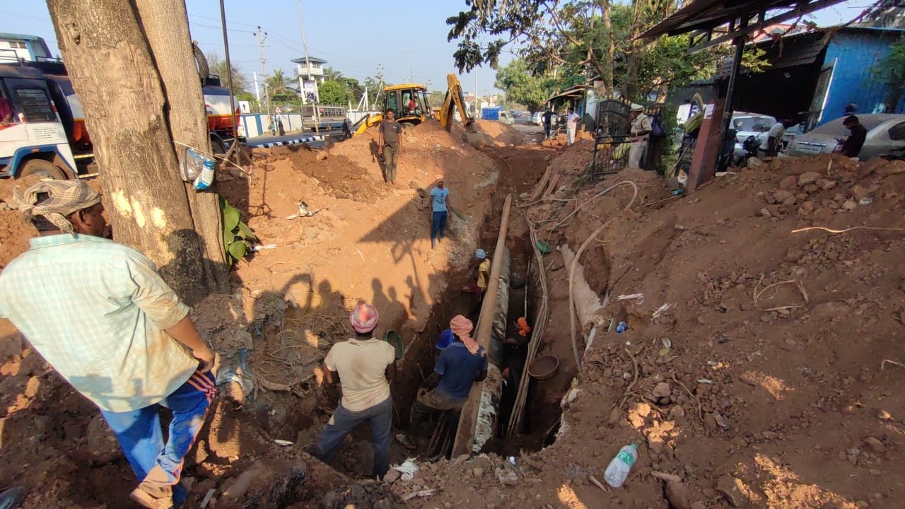 दाबोळी जंक्शनवर आढळली भूमिगत गळती : खोदकाम करुन दुरुस्तीच्या कामास प्रारंभ
