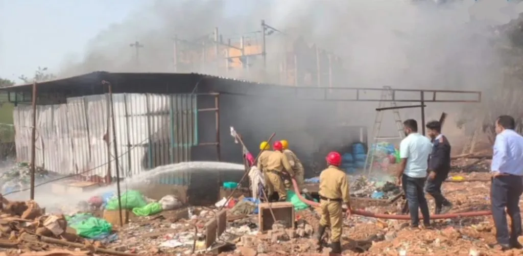 विमानतळावरील कचरा एकत्रीकरणाची शेड : आगीत दोघे कर्मचारी गंभीर जखमी,स्फोटानंतर आग लागल्याचा संशय