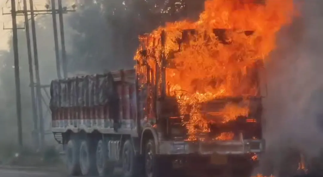 बेळगाव : जांबोटी रोडवर मच्छेनजीक रस्त्याशेजारी थांबलेल्या ट्रकला आग लागली. स्वयंपाकासाठी वापरण्यात आलेल्या लहान सिलिंडरचा स्फोट होऊन ही घटना घडली. शुक्रवारी सायंकाळी 5.30 वाजण्याच्या सुमारास घडलेल्या या घटनेत ट्रकचे केबिन पूर्णपणे जळाले. रस्त्याशेजारी ट्रक उभी करून चालक स्वयंपाक करत होता. लहान सिलिंडरवर भांडे ठेवून तो सामान आणण्यासाठी दुकानाला गेला होता. त्यावेळी सिलिंडर फुटून केबिनने पेट घेतला. वेळीच या मार्गावरून ये-जा करणाऱ्या नागरिकांनी अग्निशमन दलाला या घटनेची माहिती दिली. अग्निशमन दलाचे अधिकारी शिवाजी कोरवी, महांतेश शिंगण्णावर, बसवराज पुजेरी, हालसिद्धाप्पा हेगडे, सुरेंद्रसिंग हजारे आदींनी बंबासह घटनास्थळी दाखल होऊन आग आटोक्यात आणली. बेळगाव ग्रामीण पोलीसही घटनास्थळी दाखल झाले. सुदैवाने या घटनेत कोणतीच जीवितहानी झाली नाही.
