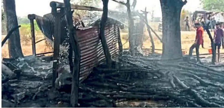 या आगीत चणा, खताची पोती, गहू, टिव्ही कॉट यांसह प्रापंचिक साहित्य जळून खाक झाले. घराशेजारी बांधलेली म्हैस व तिची दोन रेडकू दावे तोडून जखमी अवस्थेत बाजूला करण्यात आली. या दोन्ही जखमी रेडकूंची अवस्था गंभीर आहे.
