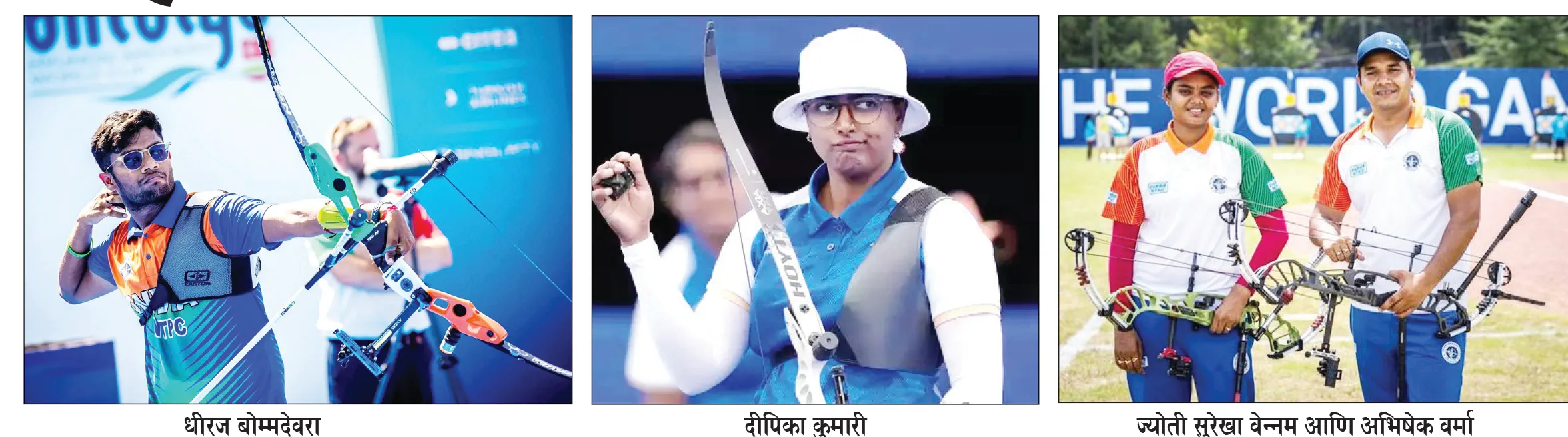 कंपाऊंड तिरंदाजी प्रकारामध्ये भारताची विश्वविक्रमवीर तिरंदाजपटू ज्योती सुरेखा वेन्नम (तृतिय मानांकीत) आणि पुरुषांच्या विभागात ऋभष यादव हे अव्वल स्थानी राहतील. दहावा मानांकीत अभिषेक, 11 मानांकीत प्रथमेश फुगे, सोळावा मानांकीत प्रियांश, सतरावा मानांकीत परणीत कौर यांचा समावेश राहील. पुरुषांच्या विभागात अमन सैनी, ओजस देवतळे, साहील जाधव, सी. जिग्नास यांचा तर महिलांच्या विभागात प्रितीका प्रदीप, अवनित कौर, मधुरा धामणगावकर यांचा सहभाग राहील.