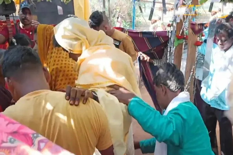 विवाह सभारंभातील ‘सिंदूरदान’ या महत्वाच्या कार्यक्रमाआधी हा कोडे किंवा चाबूक मारण्याचा कार्यक्रम केला जातो. ‘सिंदूरदान’ कार्यक्रमाच्या आधी आणखी एक असाच अनोखा कार्यक्रम केला जातो. वधूच्या कुटुंबातील महिला ‘साल’ वृक्षाच्या पानांमध्ये हळद ठेवून ती पाने छतावर फेकतात. वराच्या कुटुंबातील महिला त्यांना रोखायचे असते. या रोखण्याच्या वेळीच एकमेकांना कोडे मारले जातात. हा कार्यक्रम झाल्यानंतरच वधू आणि वर विवाहमंडपात येतात. त्यानतंर विवाह समारंभ रीतसर साजरा केला जातो. भोजनावळी होऊन कार्यक्रम संपतो.
