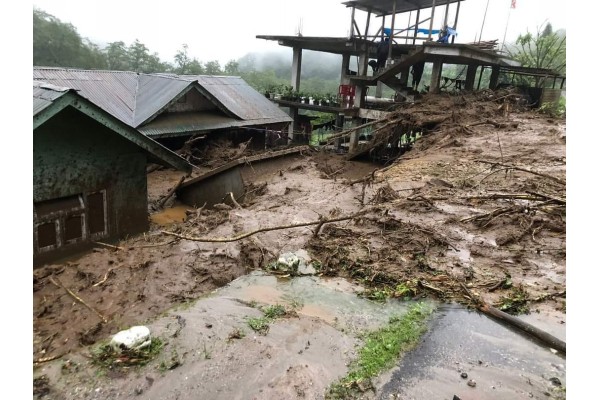 ग्यालशिंग जिल्ह्यातील डेंटम येथे भूस्खलन झाल्याने शेकडो घरे अन् रस्त्यांचे नुकसान झाले आहे. तसेच पीक अन् पशूधनाचीही हानी झाली आहे. लोअर सपुंगमध्ये कॉलेज खोला येथील पूल देखील भूस्खलनामुळे तुटला आहे. प्रशासनाकडून आपत्तीग्रस्त लोकांना तत्काळ मदत पुरविण्यात आली असून रस्ते अन् पूल दुरुस्तीचे काम त्वरित सुरू करण्यात आले आहे.