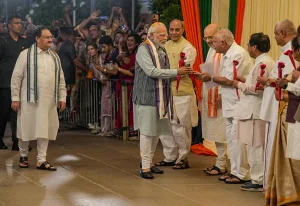 ‘जी-20’च्या यशामुळे कार्यकर्त्यांकडून फुलांच्या वर्षावात स्वागत