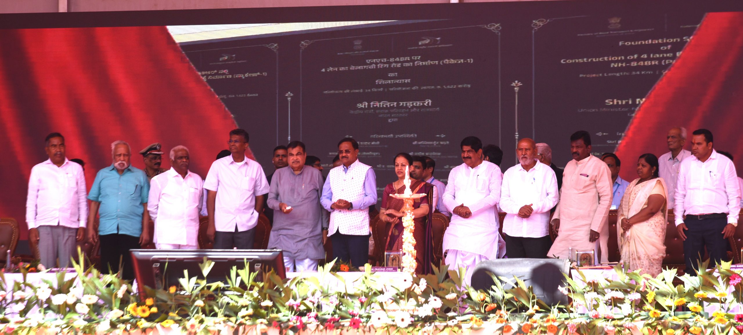 ते म्हणाले, गेल्या अनेक वर्षांपासून बेळगाव रिंगरोड निर्माण करण्याचा प्रस्ताव ठेवण्यात आला होता. दिवंगत केंद्रीय राज्य मंत्री सुरेश अंगडी यांच्यासह अनेक नेत्यांनी या रस्त्याचा प्रस्ताव ठेवला होता. ती घटीका आता आली आहे. राज्यामध्ये 8 हजार 200 कि.मी. राष्ट्रीय महामार्ग आहेत. राज्यामध्ये 3 लाख कोटी रुपये खर्च करुन विकास कामे हाती घेण्याचे उद्दिष्ट घेण्यात आले होते. त्यामधील अनेक कामे पूर्ण झाली असून तर अनेक कामांना चालना देण्यात आली आहे. रस्ते हे विकासाचे मार्ग आहेत. बेळगाव बायपास रस्त्यासाठी 3 हजार 400 कोटी निधी खर्च करण्यात येणार आहे. यामुळे बेळगाव-गोवामधील अंतर कमी होणार आहे. बेळगाव-रायचूर महत्त्वाचा कॉरिडॉर निर्माण करण्यात येणार आहे. 9 हजार कोटी खर्च करुन बेळगाव-हुनगुंद-रायचूर राष्ट्रीय महामार्ग काम हाती घेण्यात आले आहे. हा रस्ता पूर्ण झाल्यानंतर साडेतीन तास वेळ वाचणार आहे. बेळगाव-संकेश्वर महामार्ग रुंदीकरण करण्यासाठी वन खात्याची परवानगी मिळाली नसल्याने काम प्रलंबित राहिले आहे. त्यामुळे राज्य सरकारने वन खात्याची परवानगी मिळवून रस्त्याच्या विकासासाठी सहकार्य करावे, असे गडकरी यांनी सांगितले.